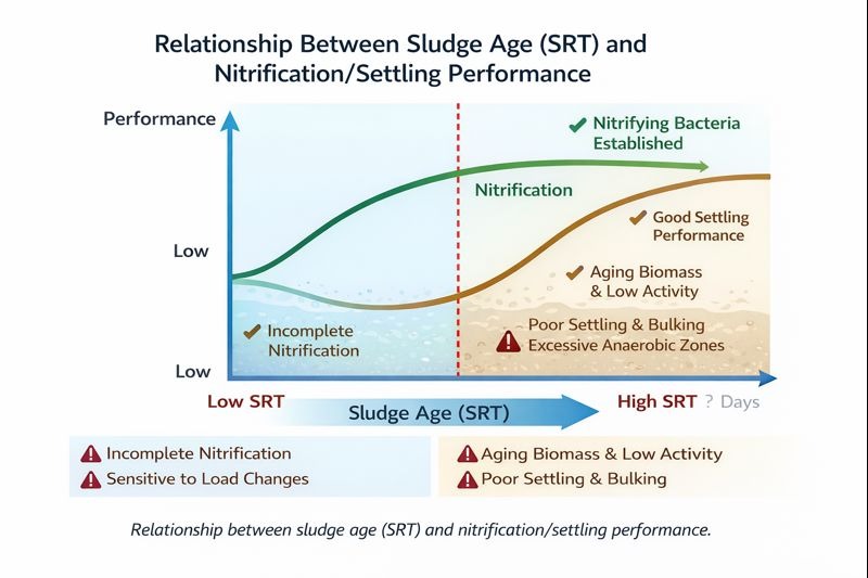 汚泥年齢 (SRT) は、バイオマスがシステム内に滞留する平均時間です。それは以下を決定します: