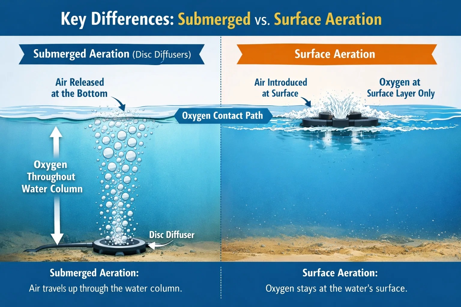 ディスクディフューザーと表面エアレーター: MBR システムでは水中エアレーションが優れている理由